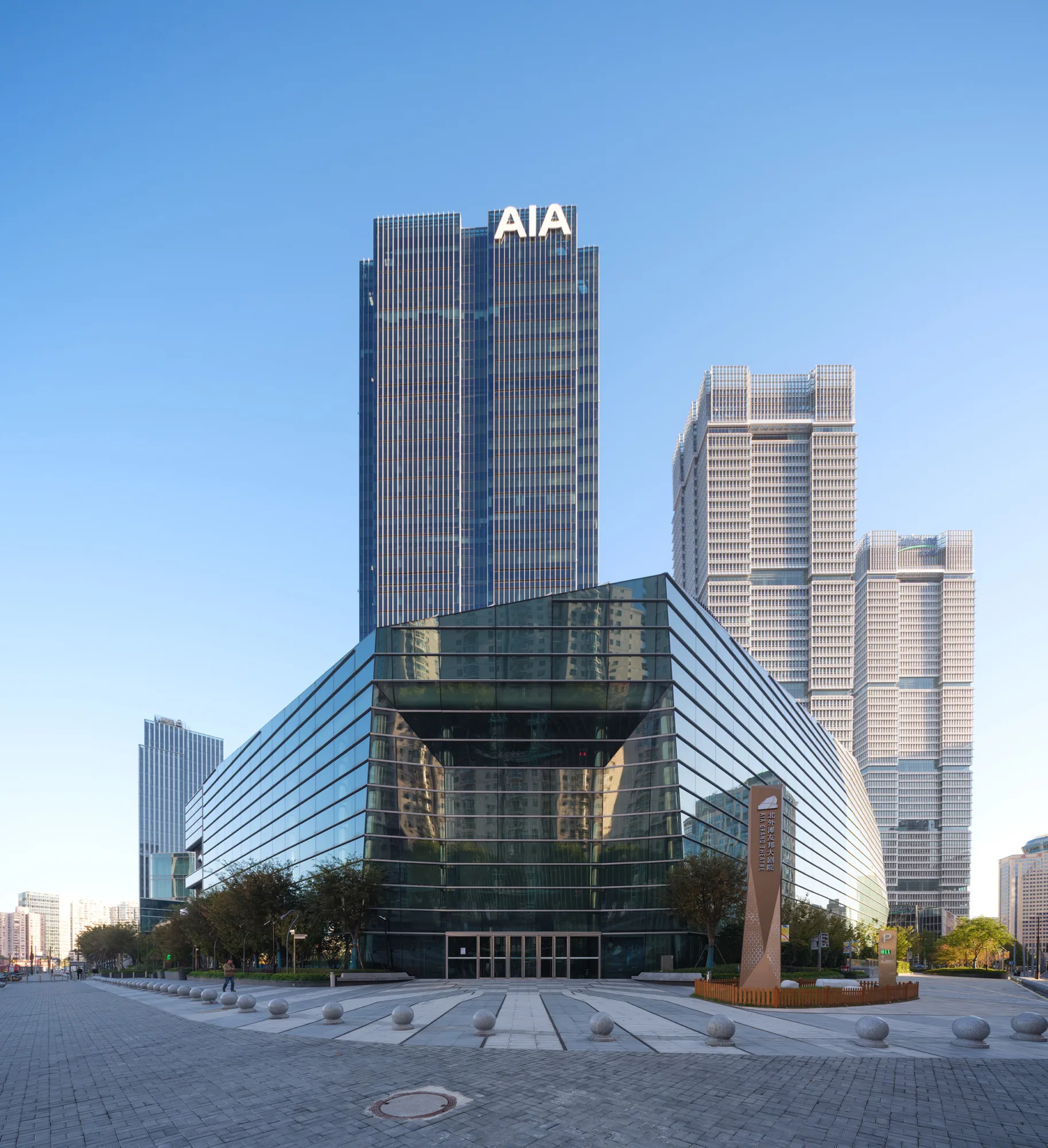 北外滩友邦大剧院——中国首个专为百老汇演出打造的剧场——作为文化枢纽坐落于项目核心位置。这座被构想为发光“音乐盒”的剧院,日间静谧典雅,入夜后则化身为璀璨夺目的地标建筑。
