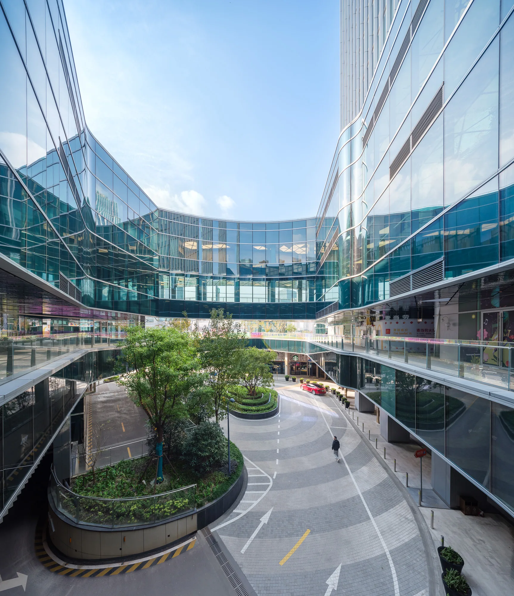 商店、餐饮与娱乐设施的布局遵循人们在场地内的自然流动轨迹。多条入口通道连接公共交通枢纽、地下步道及高架绿廊,而户外广场与表演区域则构筑出充满活力的目的地。